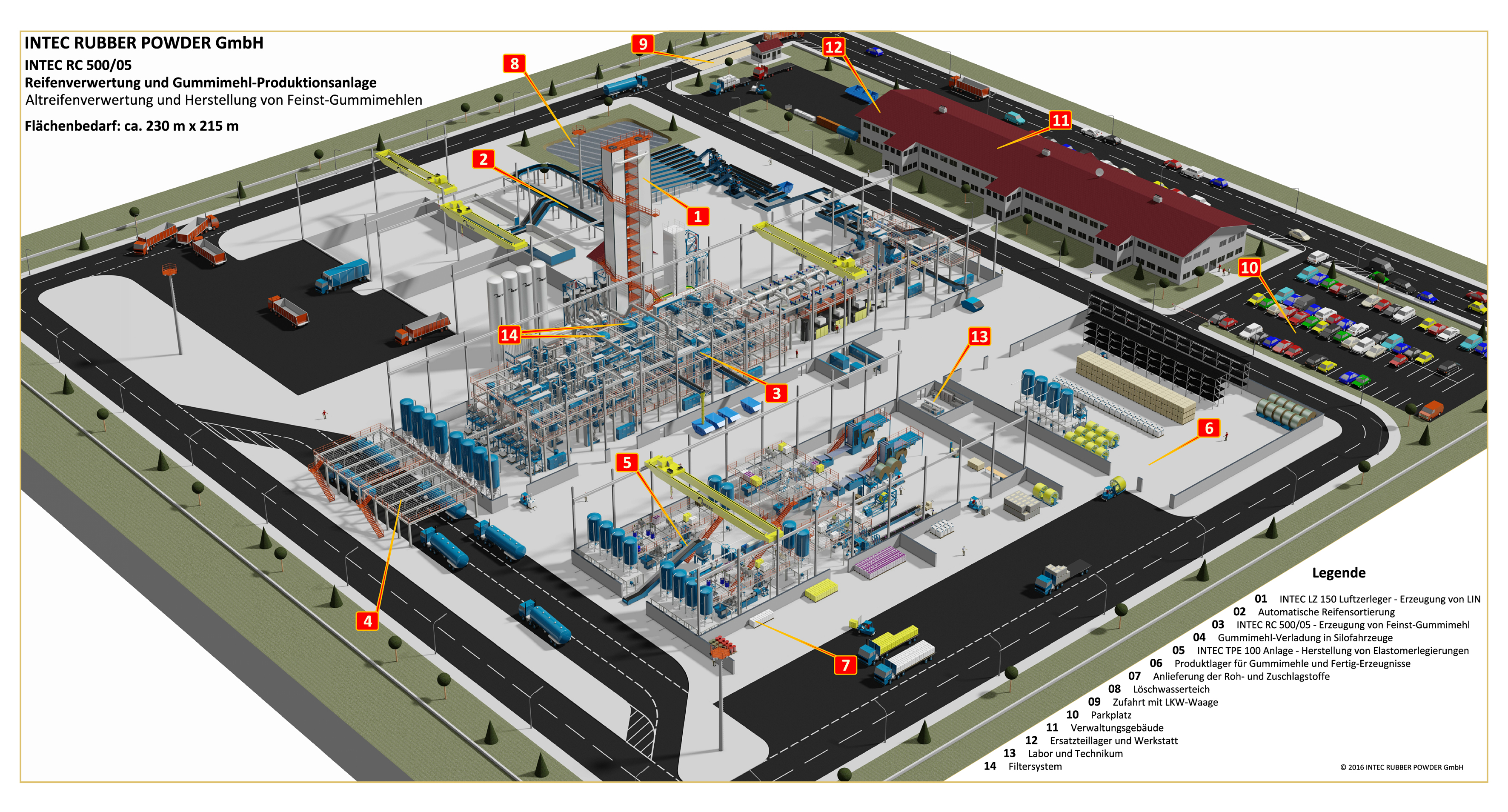 Die INTEC RC 500/05 ist als Alternative zur Verbrennung für die stoffliche Verwertung von Altreifen und Altgummi entwickelt worden. Für INTEC sind diese Reststoffe nicht nur eine ökologische Herausforderung, sondern in erster Linie eine wertvolle Rohstoffquelle.